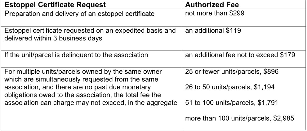 regarding assessments on the estoppel certificate. SB 398 also provides for and